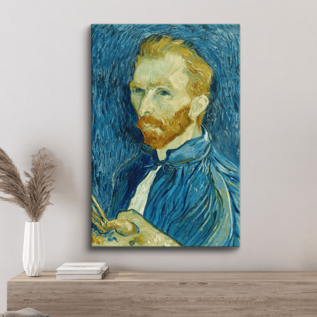 Această reproducere a autoportretului iconic realizat de Vincent van Gogh, celebru pictor olandez post-impresionist, este piesa de artă care îți va înfrumuseța locuința.