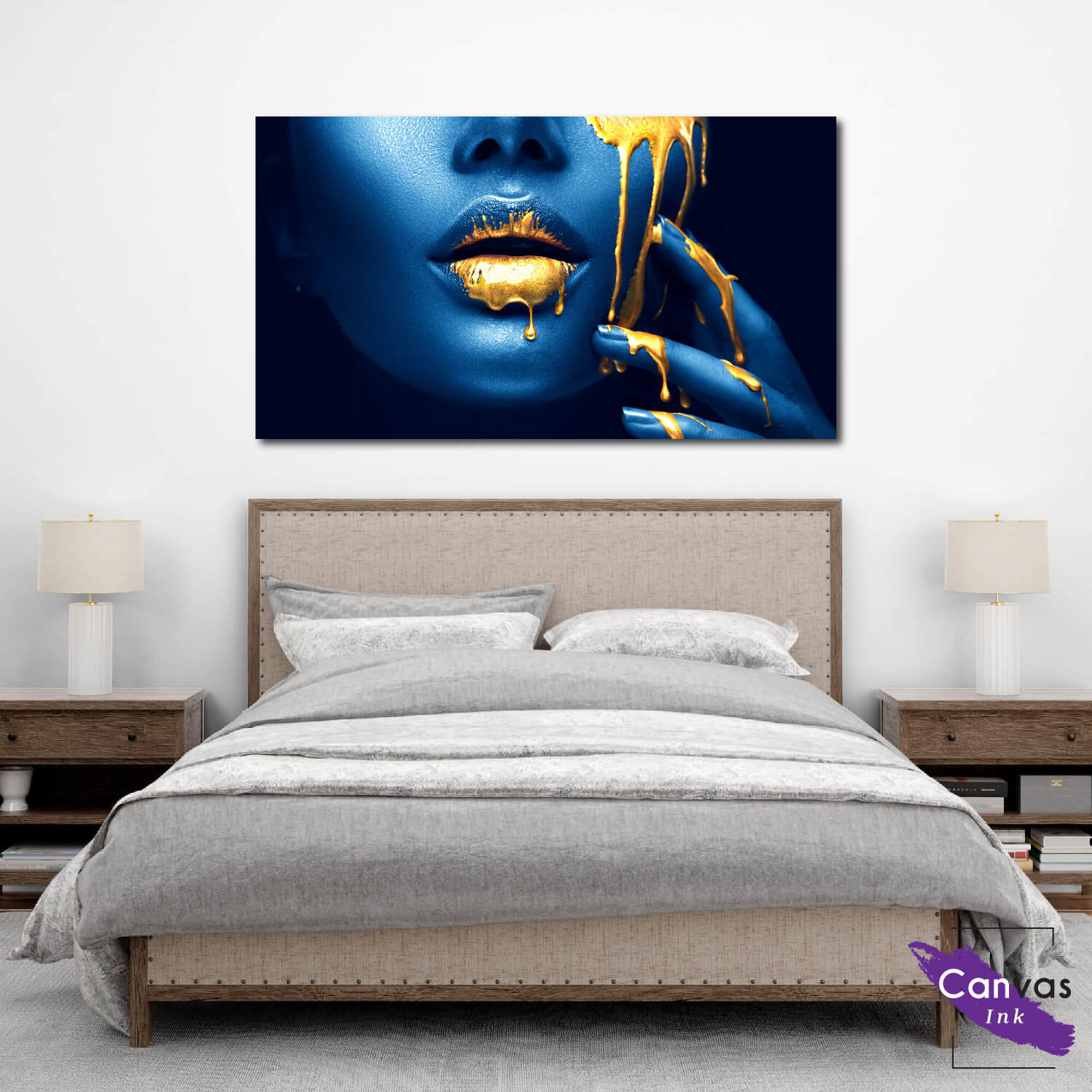 Tablou Canvas Blue Face & Gold Paint!