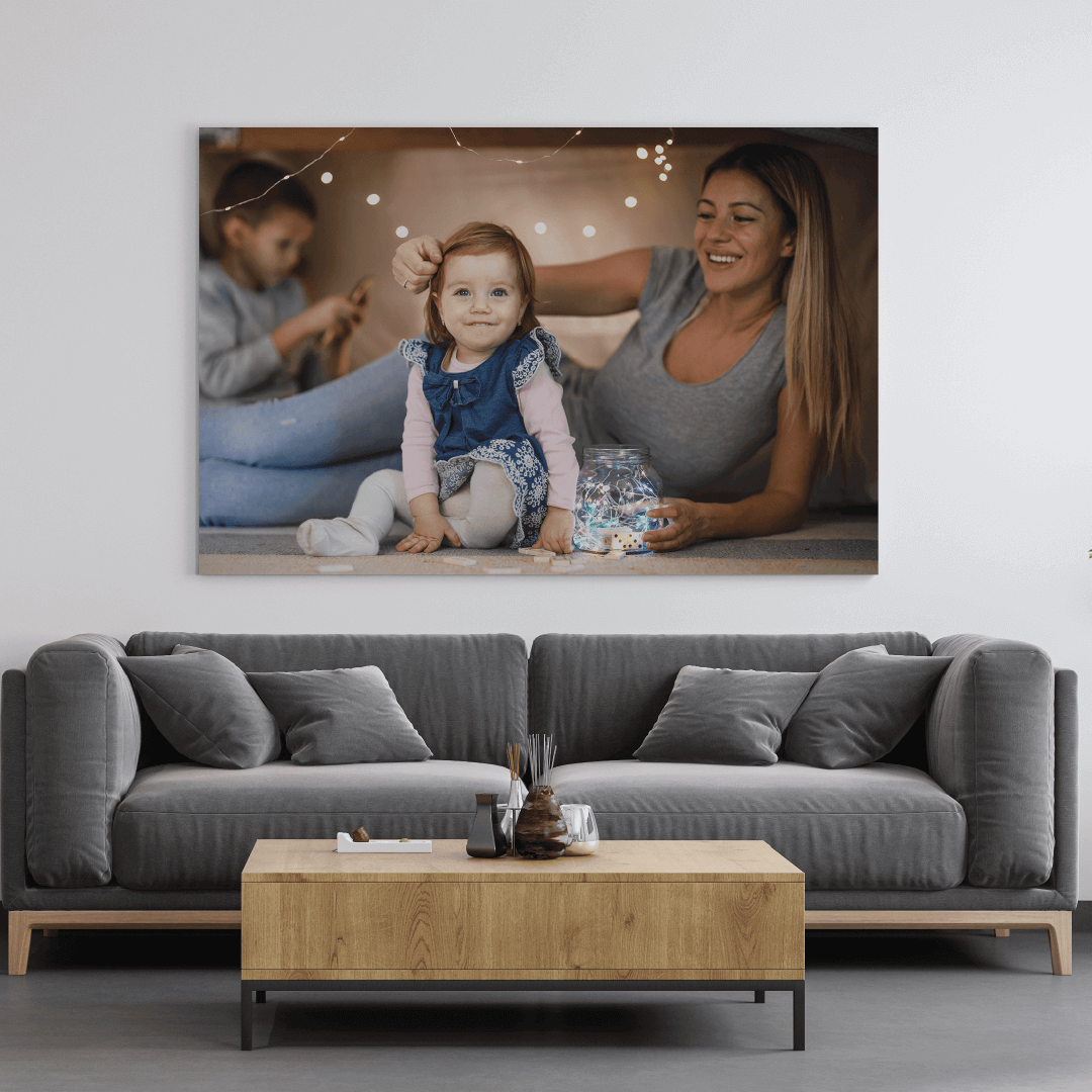 Trebuie doar să alegi dimensiunea dorită, apoi să utilizezi butonul Personalizează Produsul. Încarcă fotografia ta și poziționeaz-o în tablou. Lateralele tabloului au o grosime de 2 cm și sunt imprimate in oglindă, reflectând 2 cm din marginile imaginii astfel încât nici o parte din imagine nu va fi tăiată fiind cea mai folosită tehnică la imprimările canvas!