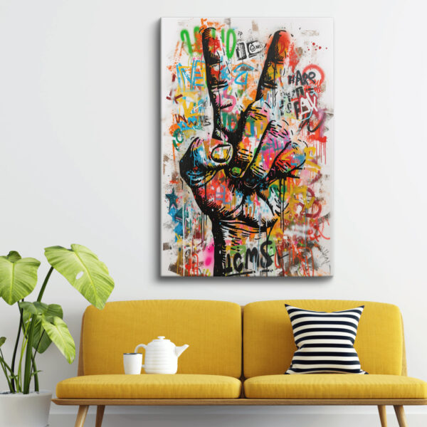 Plin de energie, culoare și mesaj – Tabloul Canvas Semnul Păcii Urbane aduce un vibe rebel și optimist în orice spațiu. Stilul graffiti, amestecul exploziv de culori și simbolul iconic al păcii transformă această piesă într-o declarație artistică puternică. Ideal pentru interioare moderne, camere de tineret, studiouri creative sau colțuri cool care merită scoase în evidență.